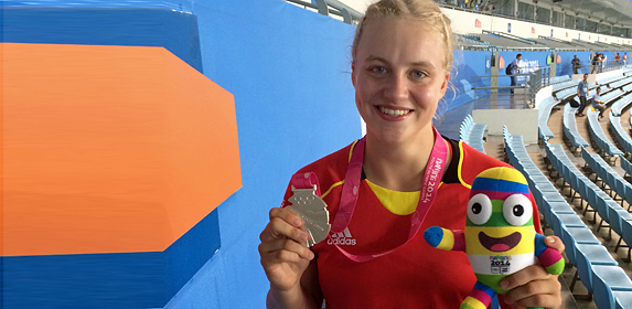 Fabienne Schönig holte sich gestern Nachmittag im chinesischen Nanjing die Silbermedaille bei den Olympischen Jugend-Sommerspielen. Platz zwei bei dieser Veranstaltung ist der größte Erfolg der erst 17-jährigen Athletin aus Gummersbach. Bereits in der Qualifikation am Freitag hatte Schönig die zweitbeste Weite auf die Anzeigentafel gebracht und auch im Finale behielt sie die Nerven und ging an ihre Leistungsgrenze. „Ich kann das noch gar nicht realisieren. Mir fehlen noch die Worte. Ich werde erst ein paar Nächte drüber schlafen müssen", sagte Schönig nach ihrem Erfolg. „Ich bin froh, dass ich Silber habe und meine Leistung abrufen konnte.“ Insgesamt neun Athletinnen hatten sich für das Finale qualifiziert. Im ersten Versuch schaffte die Werferin der LG Wipperfürth eine Weite von 51,51 Meter und lag damit zunächst auf Platz drei hinter der haushohen Favoriten aus Weißrussland Hanna Tarasiuk und der Japanerin Nagisa Mori, die mit 52,27 Metern eine persönliche Bestleistung aufstellte. Beim zweiten Auftritt im Stadion von Nanjing schleuderte Schönig den Speer 53,68 Meter weit und damit noch einmal weiter als in der Qualifikation. Damit überholte sie die Japanerin, die in den verbleibenden Versuchen nicht mehr über 50 Meter warf.