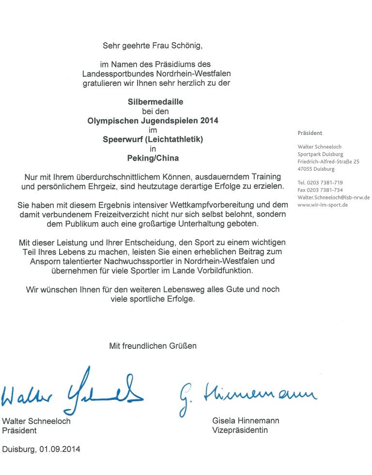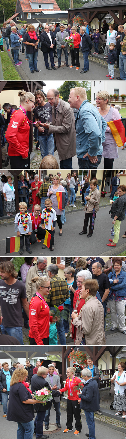 Es war ein herzlicher Empfang, den die Nachbarschaft von Fabienne Schönig, der Silbermedaillen-Gewinnerin im Speerwerfen, am gestrigen Samstag bereitet hatte. Anwohner aus Reininghausen und Freunde der sympathischen 17-jährigen Athletin waren gekommen, um ihr im persönlichen Umfeld zu ihrer hervorragenden Leistung bei den 2. Olympischen Jugend-Sommerspielen im chinesischen Nanjing zu gratulieren.